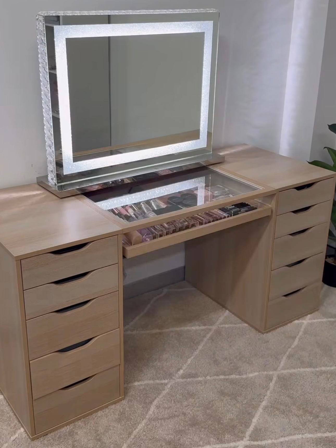 Et avec le miroir Crystalhood, rétroéclairé et orné de cristaux, elle devient une pièce maîtresse de votre coin beauté ✨