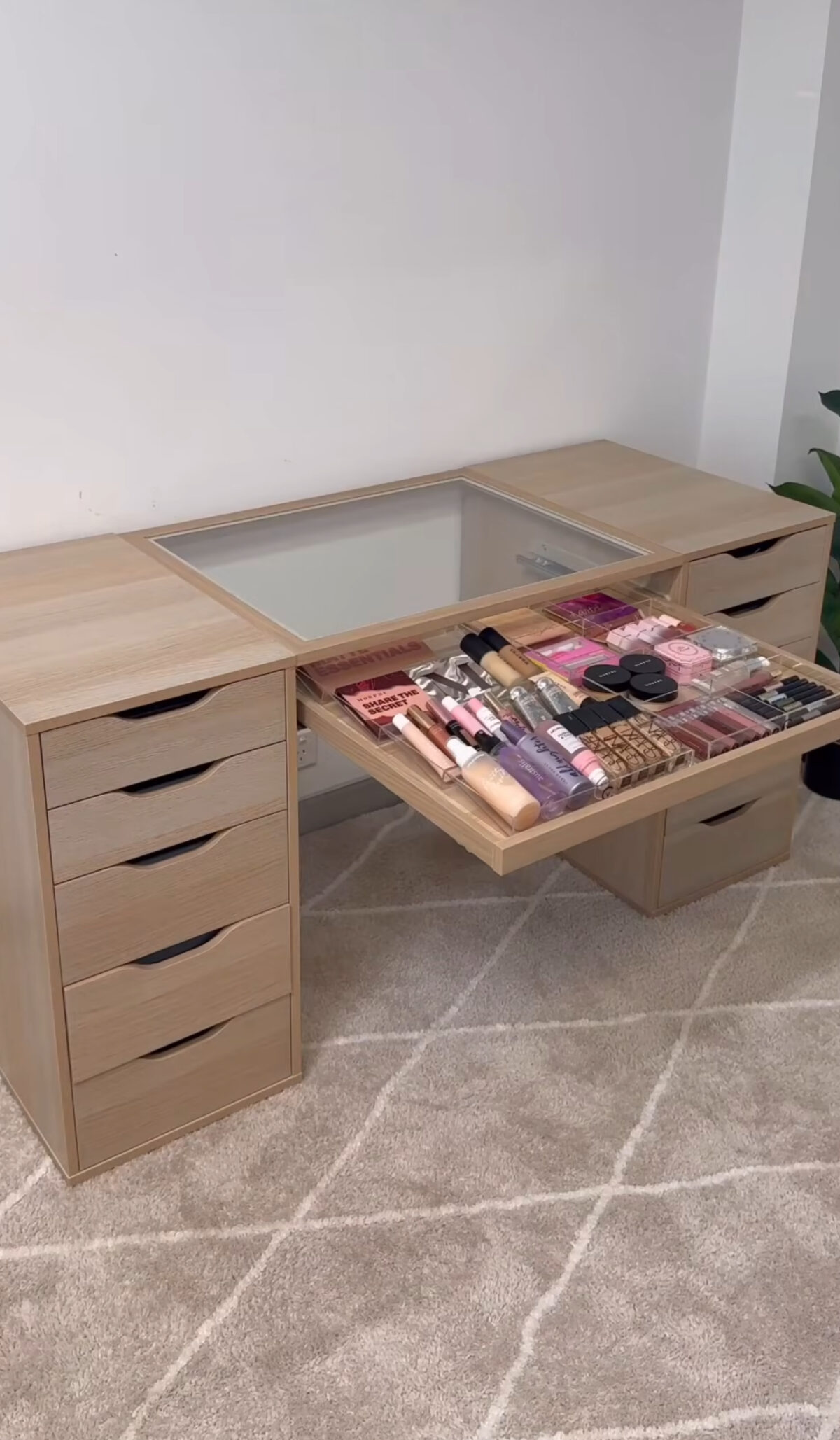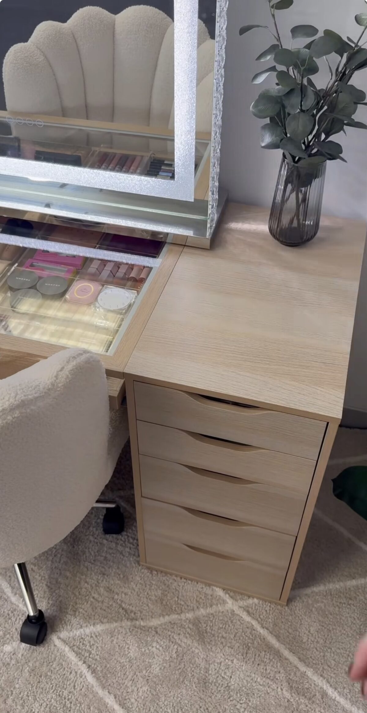 Son grand tiroir central vitré permet de visualiser d’un coup d’œil vos essentiels beauté.