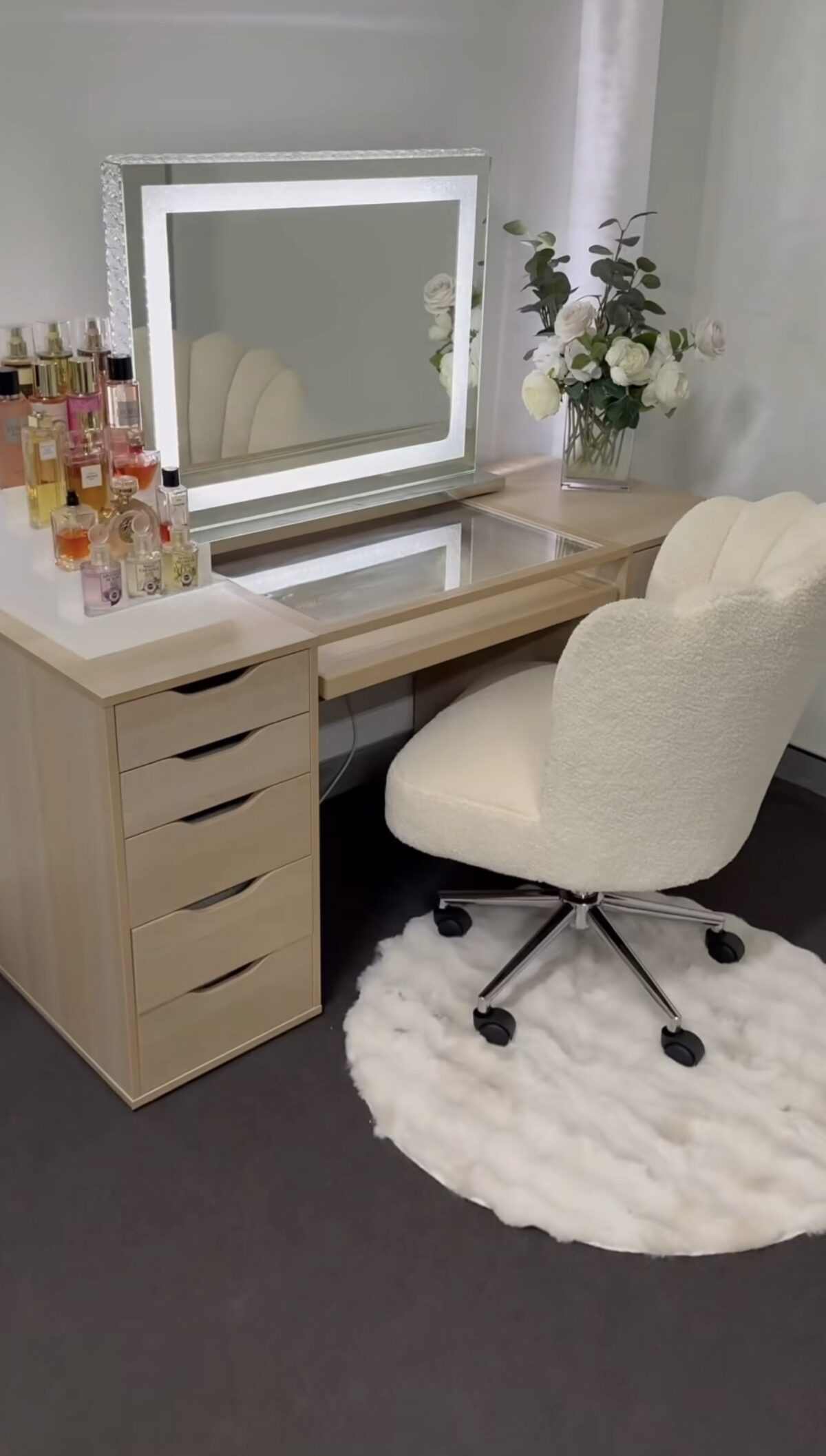 Avec ses 11 tiroirs et son design épuré, la coiffeuse Classy-Chic offre un espace parfaitement optimisé pour le rangement de votre maquillage, soins et accessoires.