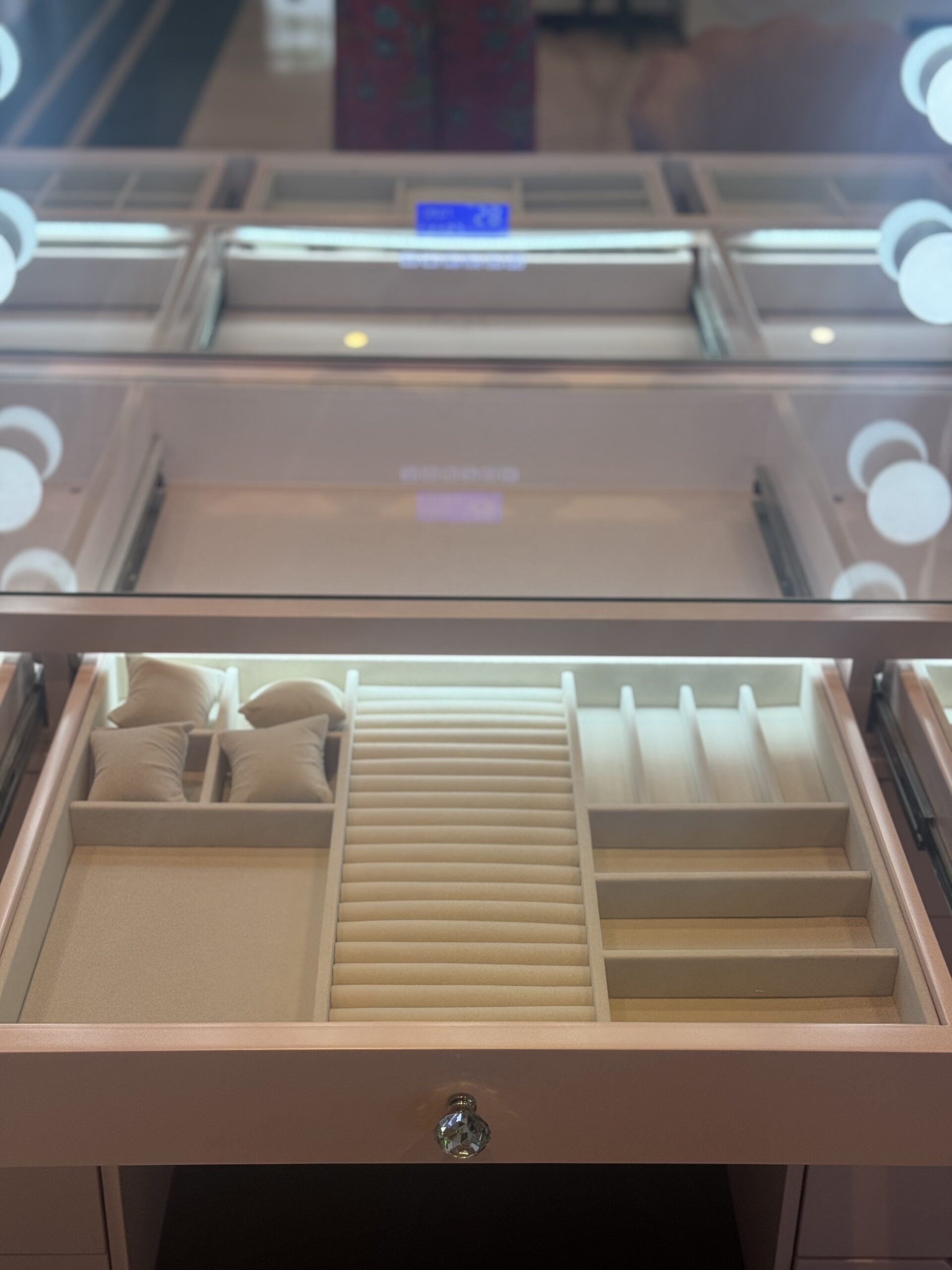 Découvrez le lot exclusif de 3 plateaux bijoux conçus sur mesure pour la coiffeuse Diamond, le modèle iconique de Maison Beauty.