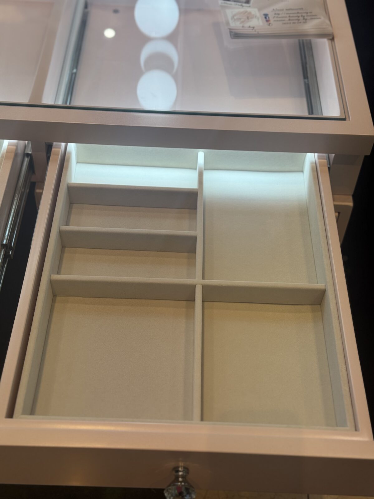 (Dimensions adaptées exclusivement aux tiroirs de la coiffeuse Diamond – non compatibles avec d’autres modèles.)