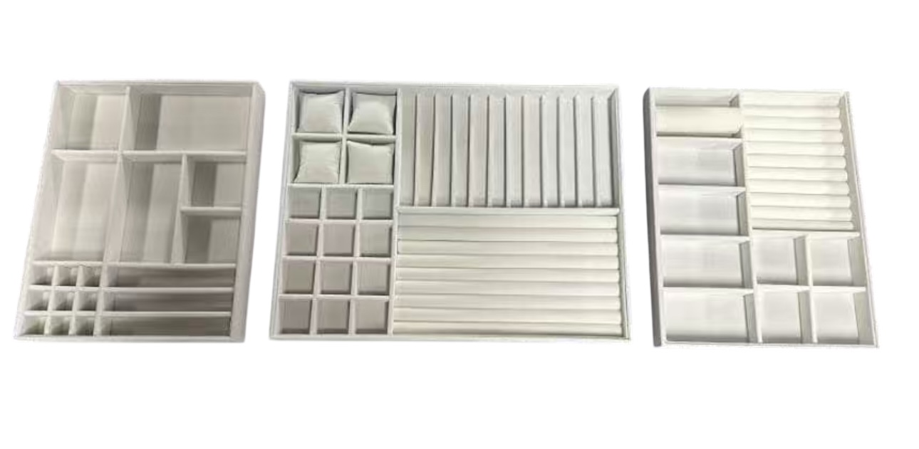 Alliant élégance et praticité, ces plateaux en velours doux transforment vos tiroirs en véritables écrins à bijoux.