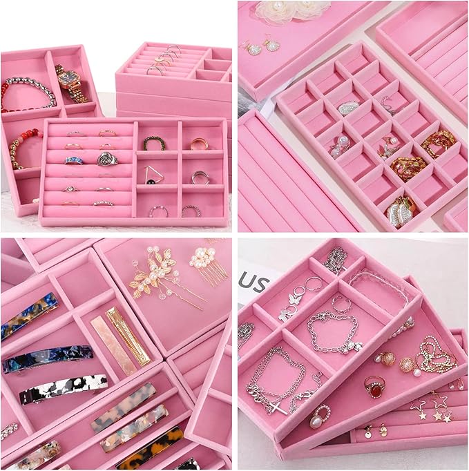 AccueilRangements bijoux LOT DE 5 PLATEAUX A BIJOUX – ROSE