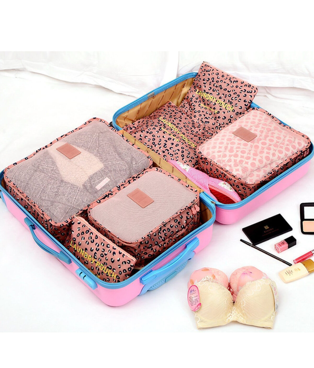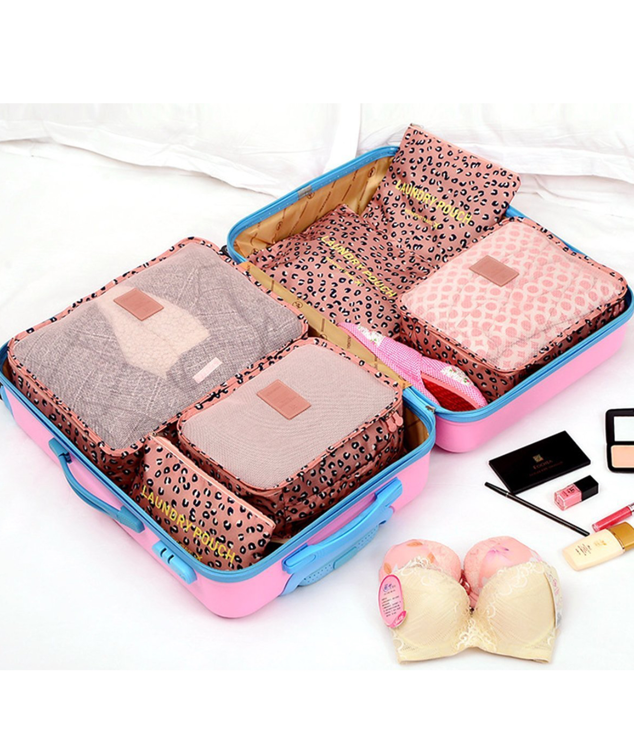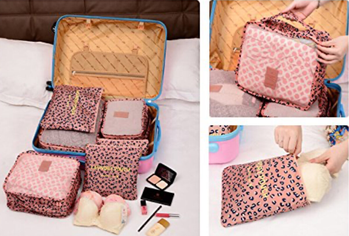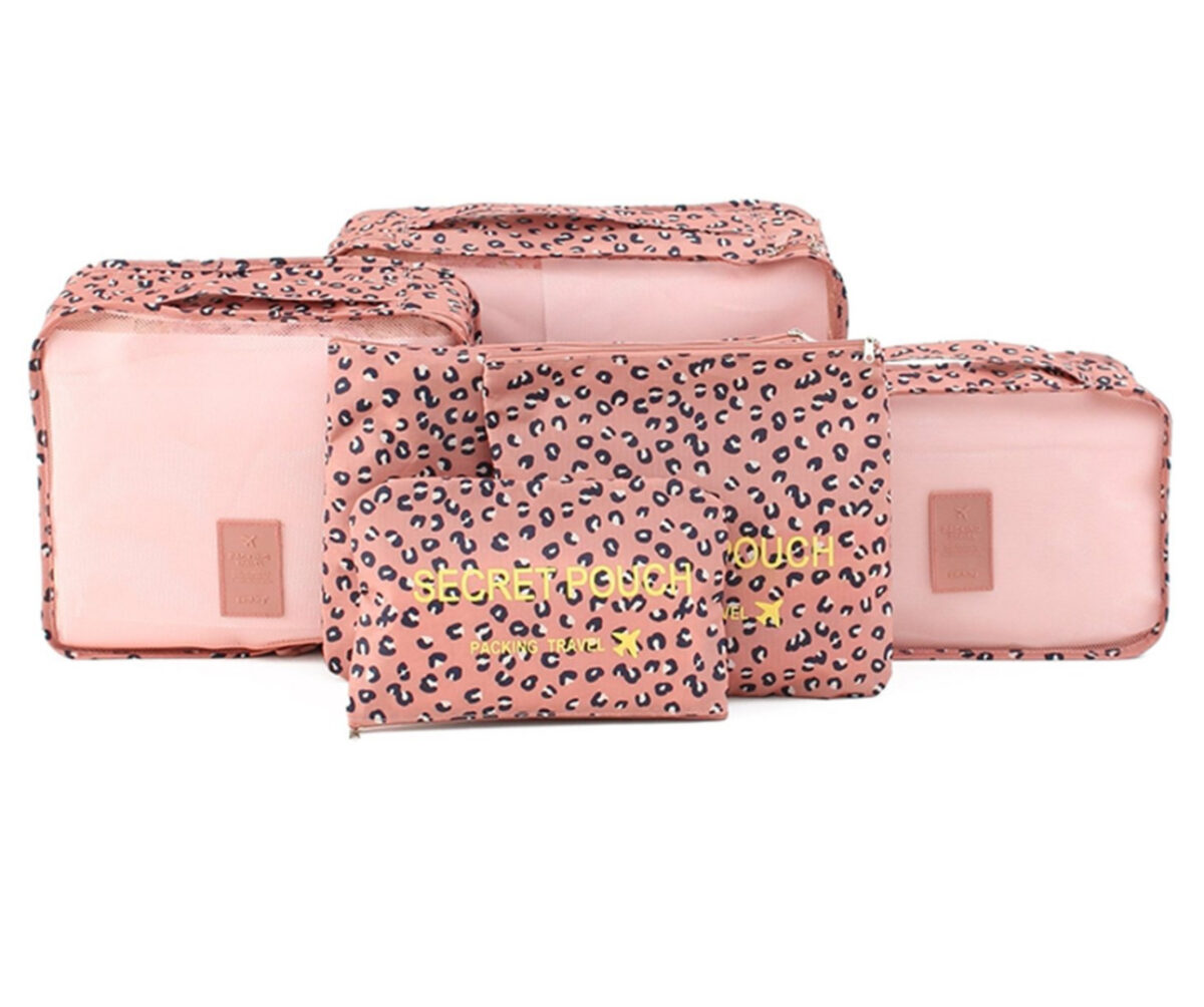 LOT DE 6 ORGANISATEURS DE VOYAGE – IMPRIMÉ LÉOPARD ROSE