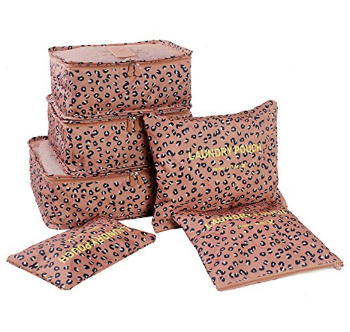 Préparez vos valises avec style grâce à ce lot de 6 organiseurs de voyage au motif léopard rose.