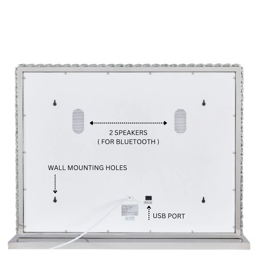 Le miroir Crystalhood sublime votre espace beauté grâce à son rendu unique en cristal et ses bords sertis de diamants, offrant un éclat glamour incomparable. Son éclairage LED encastré diffuse une lumière douce, homogène.