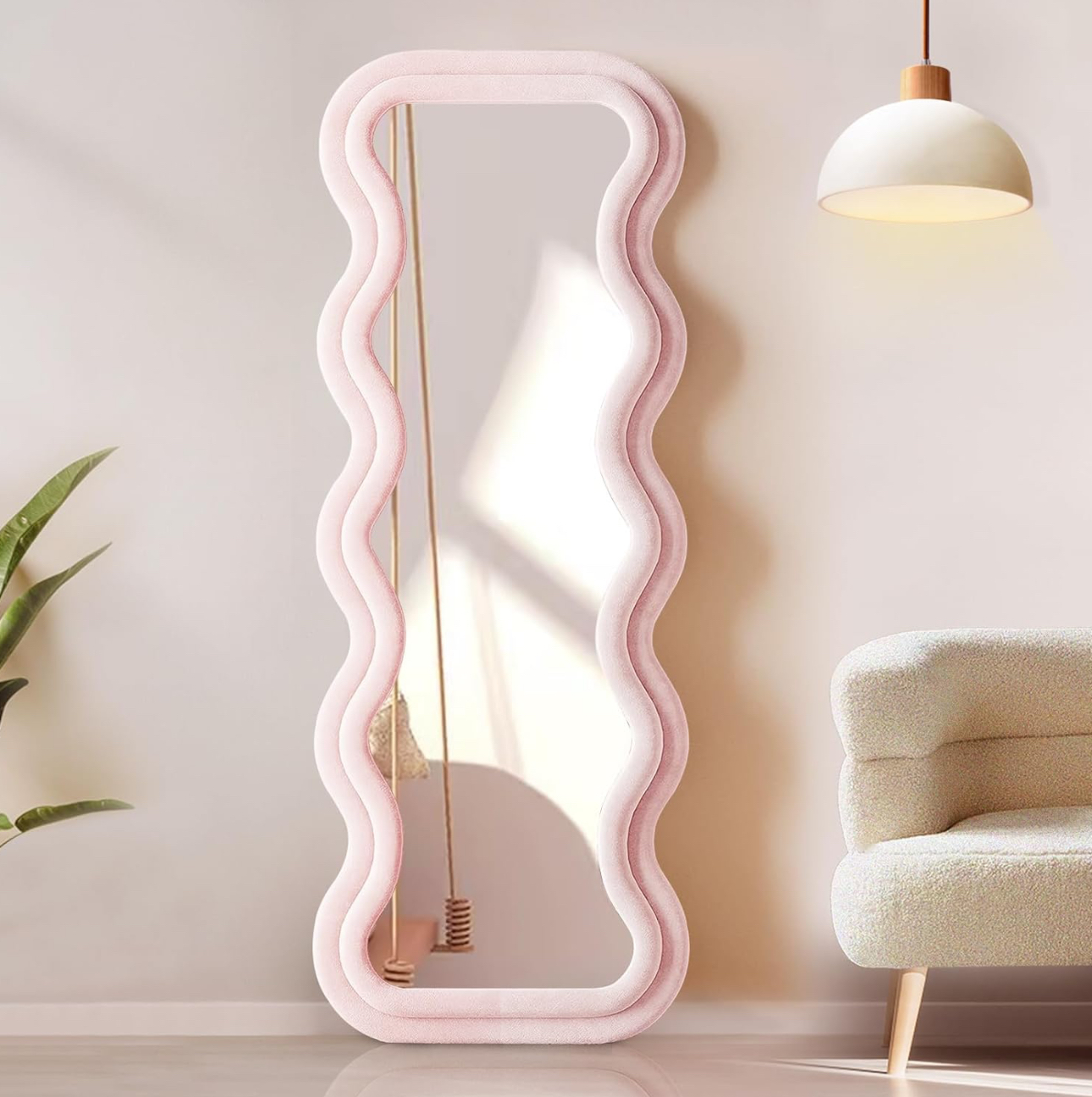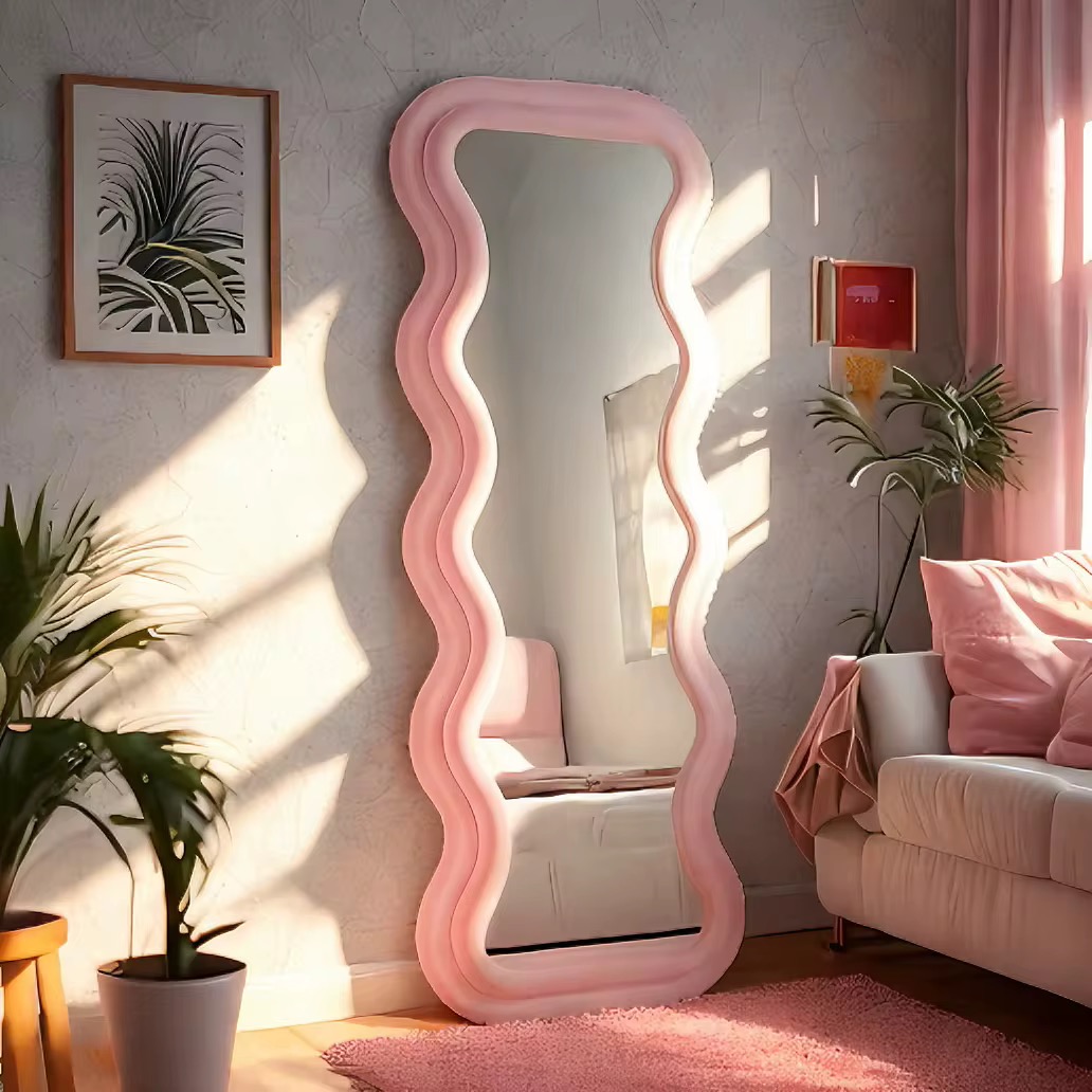 MIROIR ONDULÉ ROSE A POSER AU SOL OU À FIXER AU MUR