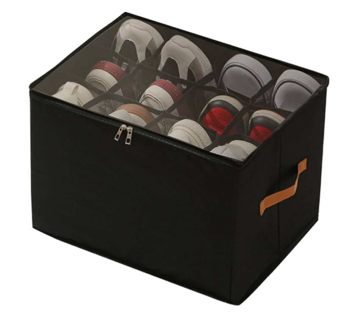 Avec ses 12 compartiments intérieurs, elle permet de ranger vos sneakers, escarpins ou sandales tout en les gardant visibles grâce à son couvercle transparent zippé.