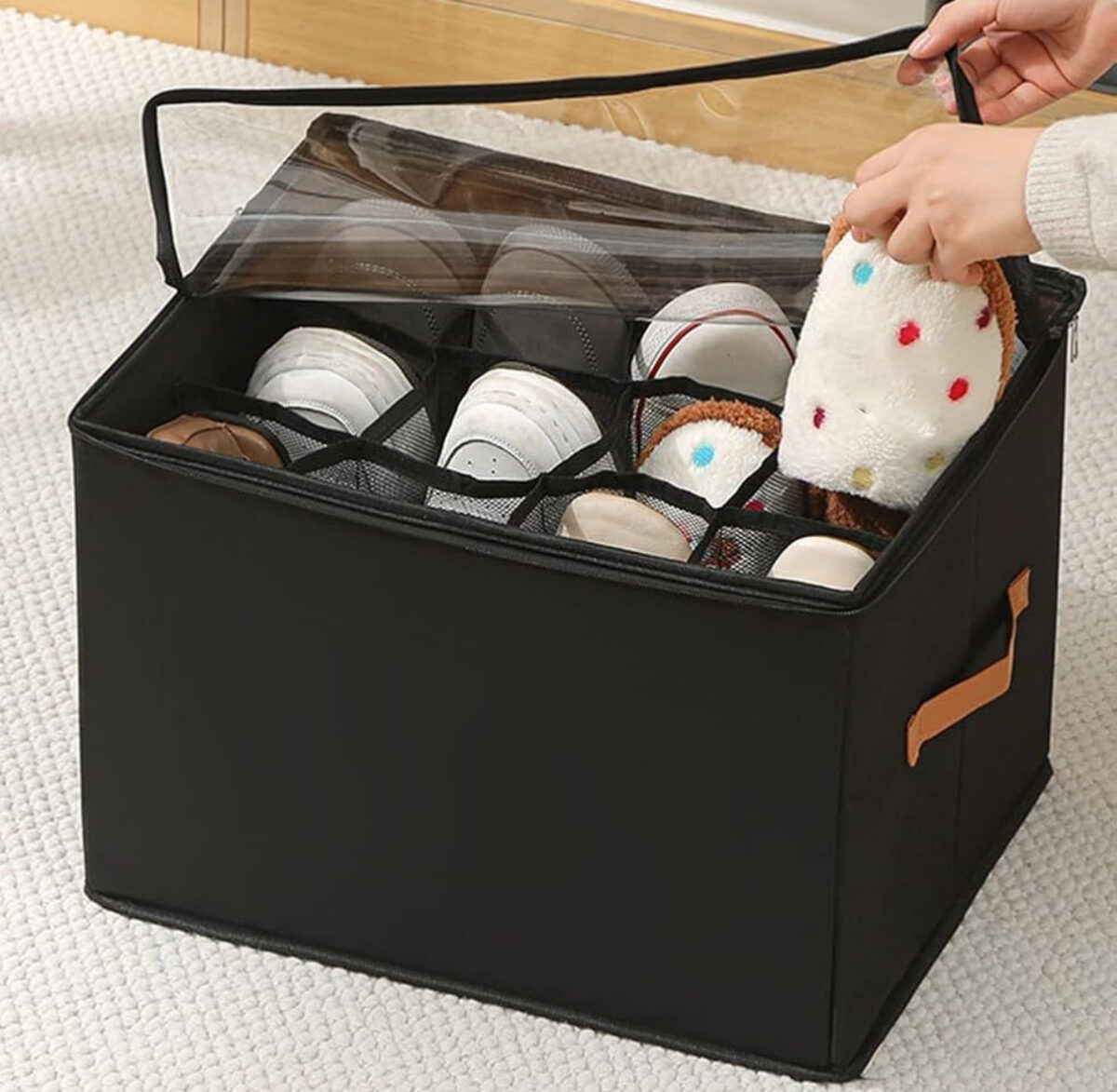 Rangez et protégez vos chaussures avec élégance grâce à cette boîte de rangement pratique et esthétique, idéale pour garder votre dressing bien ordonné.