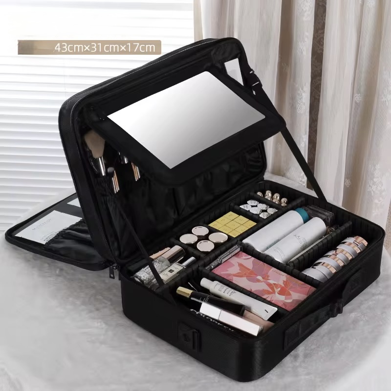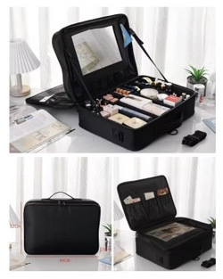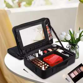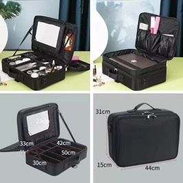 Pensée pour les maquilleuses, coiffeuses et passionnées de beauté, cette trousse professionnelle à 2 étages offre une grande capacité de rangement, un design élégant noir mat, et une finition premium qui en fait un indispensable sur toutes les tables de maquillage.