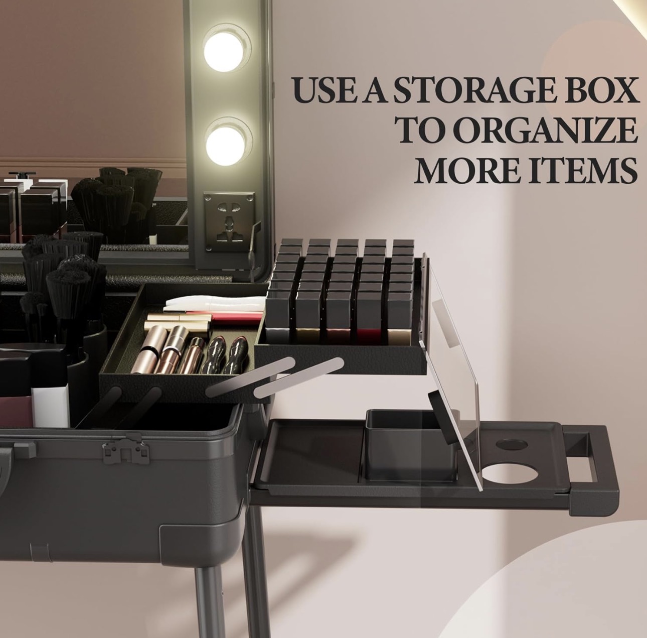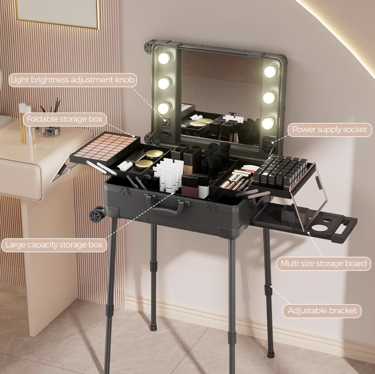 Conçue pour être mobile, pratique et ultra organisée, elle se transforme en véritable station de maquillage professionnelle en quelques secondes.